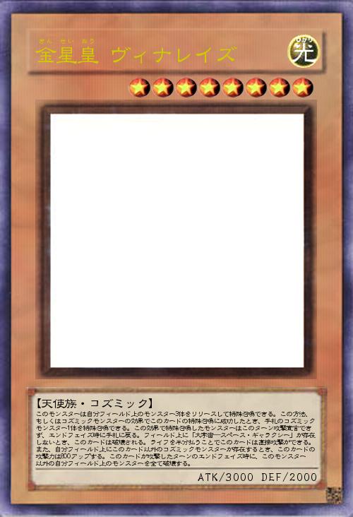 | このモンスターは自分フィールド上のモンスター3体をリリースして特殊召喚できる。この方法、もしくはコズミックモンスターの効果でこのカードの特殊召喚に成功したとき、手札のコズミックモンスター1体を特殊召喚できる。この効果で特殊召喚したモンスターはこのターン攻撃宣言できず、エンドフェイズ時に手札に戻る。フィールド上に「大宇宙―スペース・ギャラクシー」が存在しないとき、このカードは破壊される。ライフを半分払うことでこのカードは直接攻撃ができる。また、自分フィールド上にこのカード以外のコズミックモンスターが存在するとき、このカードの攻撃力は800アップする。このカードが攻撃したターンのエンドフェイズ時に、このモンスター以外の自分フィールド上のモンスターを全て破壊する。 | |||