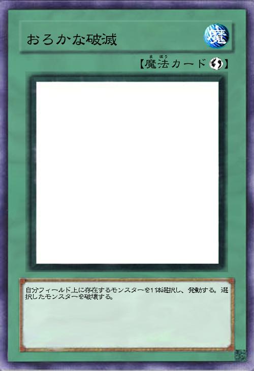 | 自分フィールド上に存在するモンスターを1体選択し、発動する。選択したモンスターを破壊する。 | |||