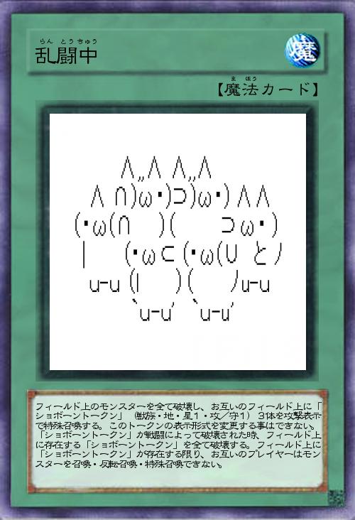 | フィールド上のモンスターを全て破壊し、お互いのフィールド上に「ショボーントークン」(獣族・地・星1・攻/守1)3体を攻撃表示で特殊召喚する。このトークンの表示形式を変更する事はできない。「ショボーントークン」が戦闘によって破壊された時、フィールド上に存在する「ショボーントークン」を全て破壊する。フィールド上に「ショボーントークン」が存在する限り、お互いのプレイヤーはモンスターを召喚・反転召喚・特殊召喚できない。 | |||