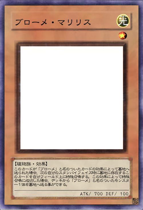 最後のレベル1ブローメ。下級ブローメは墓地に落とした後蘇生できるので、チューナーやデイジー等を落とすのが好ましい。例によって例の如く遅いので過信は禁物。」(2013-05-15 00:40)