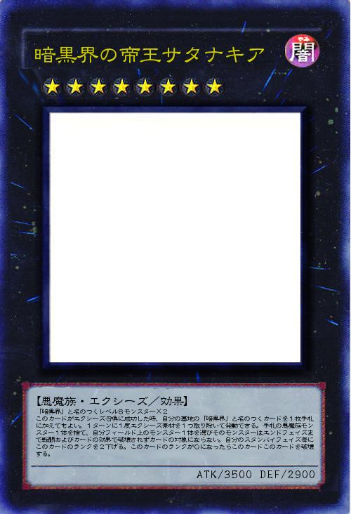 「暗黒界」と名のつくレベル8モンスター×2 このカードがエクシーズ召喚に成功した時、自分の墓地の「暗黒界」と名のつくカードを1枚手札に加えてもよい。1ターンに1度エクシーズ素材を1つ取り除いて発動できる。手札の悪魔族モンスター1体を捨て、自分フィールド上のモンスター1体を選びそのモンスターはエンドフェイズまで戦闘およびカードの効果で破壊されずカードの対象にならない。自分のスタンバイフェイズ毎にこのカードのランクを2下げる。このカードのランクが0になったらこのカードこのカードを破壊する。 |