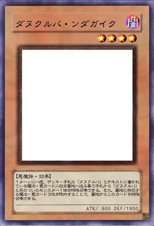| 1ターンに一度、デッキ・手札の「ダヌクルバ」とテキストに書かれている魔法・罠カード二枚を墓地へ送る事で手札から「ダヌクルバ」と名のついたモンスター1体を特殊召喚できる。また、墓地に存在する魔法・罠カード3枚を除外することで、墓地からこのカードを特殊召喚できる。 | |||