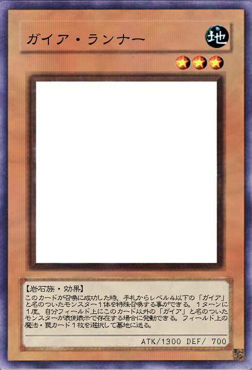 | このカードが召喚に成功した時、手札からレベル4以下の「ガイア」と名のついたモンスター1体を特殊召喚する事ができる。1ターンに1度、自分フィールド上にこのカード以外の「ガイア」と名のついたモンスターが表側表示で存在する場合に発動できる。フィールド上の魔法・罠カード1枚を選択して墓地に送る。 | |||