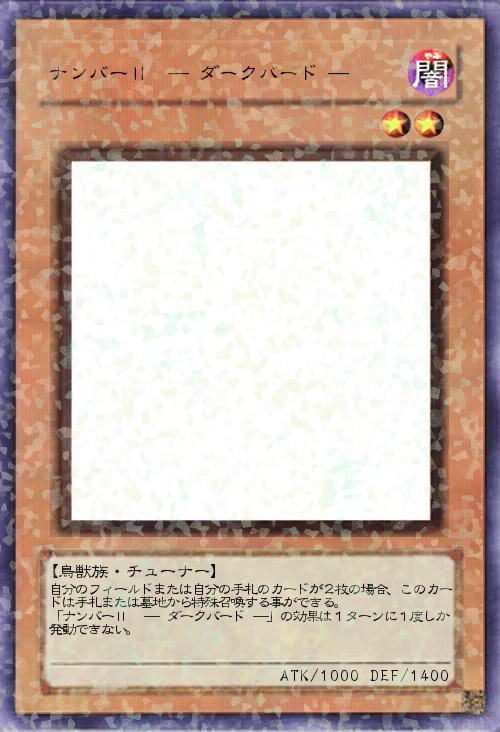 自分のフィールドまたは自分の手札のカードが2枚の場合、このカードは手札または墓地から特殊召喚する事ができる。 「ナンバーⅡ ― ダークバード ―」の効果は1ターンに1度しか発動できない。 |