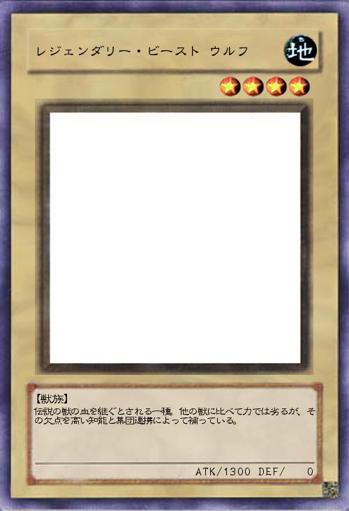 「攻撃力は低く、レベル4のステータスではないですが、基本的に【レジェンダリー・ビースト】の下級はレベル4かつ通常モンスターと決めているのでこのステータスです。」(2013-05-24 15:07)