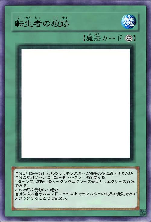 自分が「転生龍」と名のつくモンスターの特殊召喚に成功するたび 自分の除外ゾーンに「転生者トークン」を配置する。 1ターンに1度転生者トークンをエクシーズ素材としエクシーズ召喚できる。 この効果を発動した場合 自分は次の自分のエンドフェイズまでモンスターの効果を発動できず アタックすることもできない。 |