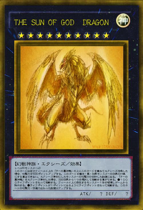 「アニメ版効果を利用したカードです。ラーをエクシーズ素材した場合のみ効果が発動できます。一応、禁止になりそうな効果にしました。」(2013-05-29 00:27)