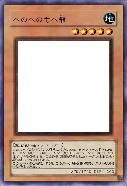 このカードがアドバンス召喚に成功した時、自分フィールド上にHEトークン(星3)・NOトークン(星2)・MOトークン(星1)を1体ずつ特殊召喚する。この効果で特殊召喚されたトークンは全て地・魔法使い・攻守0である。 このカードの召喚後、自分はこのターン魔法使い族モンスター以外を特殊召喚できない。 |
