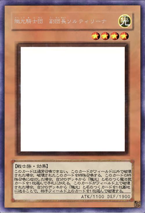 | このカードは通常召喚できない。このカードがフィールド以外で破壊された場合、破壊されたこのカードを特殊召喚する。このカードの特殊召喚に成功した場合、自分のデッキから「殱光」と名のつく魔法罠カードを1枚選んで手札に加える。このカードがフィールド上で破壊された場合、自分のデッキから「殱光」と名のつくカードを1枚墓地に送ることで、相手フィールド上のカードを1枚選んで破壊する。 | |||