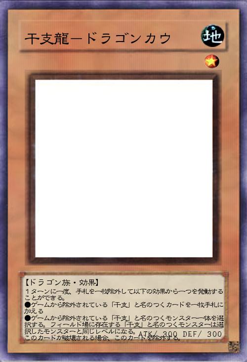1ターンに一度、手札を一枚除外して以下の効果から一つを発動することができる。 ●ゲームから除外されている「干支」と名のつくカードを一枚手札に加える ●ゲームから除外されている「干支」と名のつくモンスター一体を選択する。フィールド場に存在する「干支」と名のつくモンスターは選択したモンスターと同じレベルになる。 このカードが破壊される場合、このカードを除外する。 |