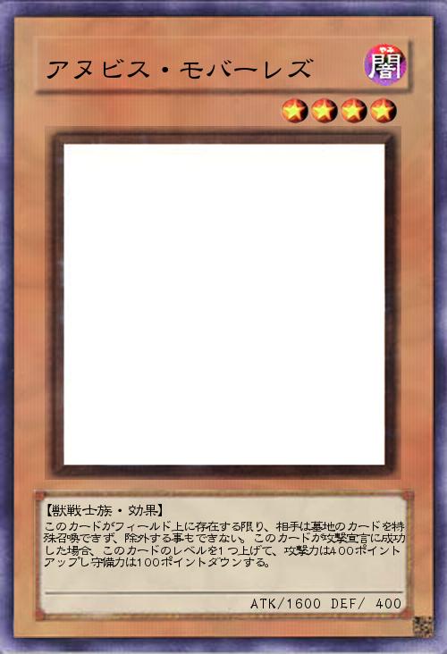 | このカードがフィールド上に存在する限り、相手は墓地のカードを特殊召喚できず、除外する事もできない。このカードが攻撃宣言に成功した場合、このカードのレベルを1つ上げて、攻撃力は400ポイントアップし守備力は100ポイントダウンする。 | |||