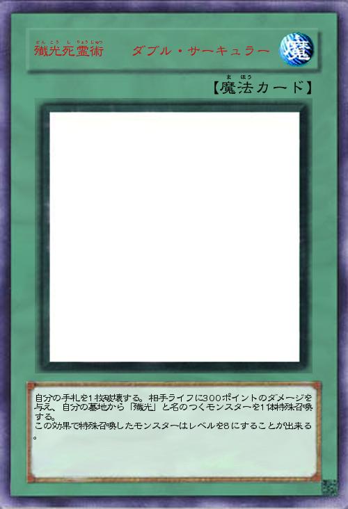 自分の手札を1枚破壊する。相手ライフに300ポイントのダメージを与え、自分の墓地から「殱光」と名のつくモンスターを1体特殊召喚する。 この効果で特殊召喚したモンスターはレベルを8にすることが出来る。 |