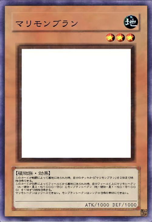 このカードが戦闘によって墓地に送られた時、自分のデッキから「マリモンブラン」を2体まで特殊召喚できる。 このカードが効果によってフィールドから墓地に送られた時、自分フィールド上にマリモトークン(水・植物・星2・攻1000・守0)とモンブラントークン(地・植物・星1・攻0・守1000)を1体ずつ特殊召喚する。 マリモトークンはリリースできない。モンブラントークンはシンクロ召喚の素材にできない。 |