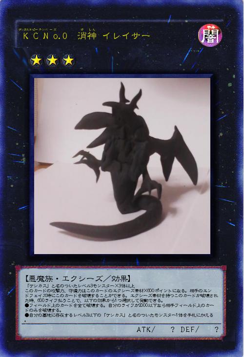 「ケシカス」と名のついたレベル3モンスター×3体以上 このカードの攻撃力、守備力はこのカードのエクシーズ素材×600ポイントになる。相手のエンドフェイズ時にこのカードを破壊することができる。エクシーズ素材を持つこのカードが破壊された時、600ライフ払うことで、以下の効果から1つ選択して発動できる。 ●フィールド上のカードを全て破壊する。自分のライフが2000以下なら相手フィールド上のカードのみを破壊する。 ●自分の墓地に存在するレベル3以下の「ケシカス」と名のついたモンスター1体を手札に加える。 |