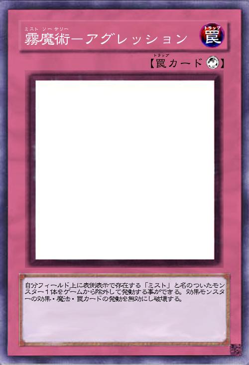 | 自分フィールド上に表側表示で存在する「ミスト」と名のついたモンスター1体をゲームから除外して発動する事ができる。効果モンスターの効果・魔法・罠カードの発動を無効にし破壊する。 | |||