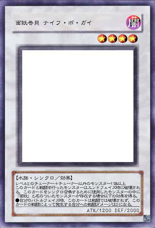 念のため書いておきますが、戦闘破壊耐性は「面妖」を素材にしなければいけないのと、自分のターンのバトルフェイズにしか耐性がないので、少し使いづらい所もあるかもしれません。」(2013-06-13 19:44)