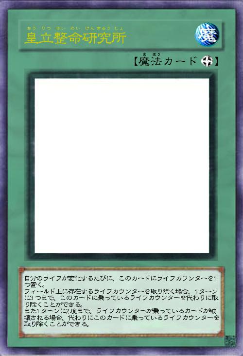 自分のライフが変化するたびに、このカードにライフカウンターを1つ置く。 フィールド上に存在するライフカウンターを取り除く場合、1ターンに3つまで、このカードに乗っているライフカウンターを代わりに取り除くことができる。 また1ターンに2度まで、ライフカウンターが乗っているカードが破壊される場合、代わりにこのカードに乗っているライフカウンターを取り除くことができる。 |
