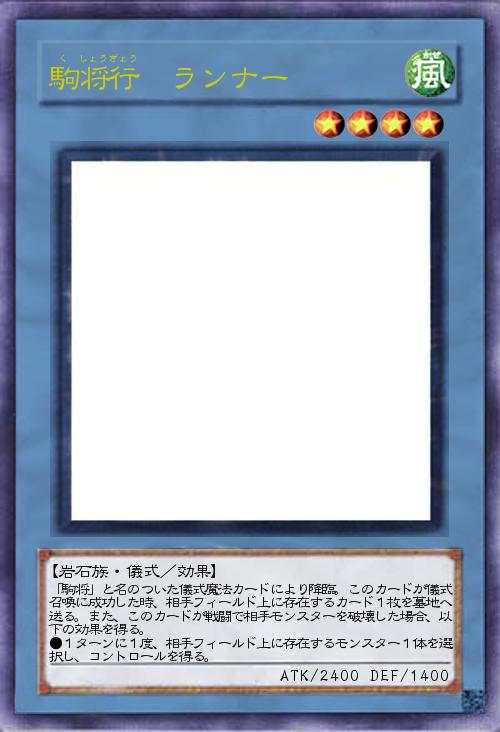 「駒将」と名のついた儀式魔法カードにより降臨。このカードが儀式召喚に成功した時、相手フィールド上に存在するカード1枚を墓地へ送る。また、このカードが戦闘で相手モンスターを破壊した場合、以下の効果を得る。 ●1ターンに1度、相手フィールド上に存在するモンスター1体を選択し、コントロールを得る。 |