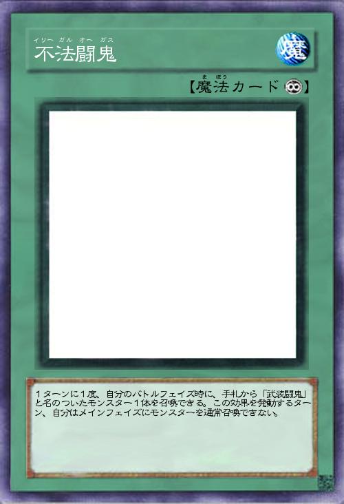 1ターンに1度、自分のバトルフェイズ時に、手札から「武装闘鬼」と名のついたモンスター1体を召喚できる。この効果を発動するターン、自分はメインフェイズにモンスターを通常召喚できない。 |