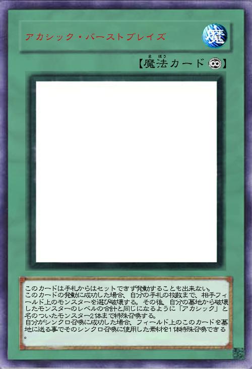 アシッドフリーズと同じく発動条件が非常に厳しいものとなっております。純アカシックで使う場合、除外されたこのカードを発動する形以外今のところ無いでしょう。