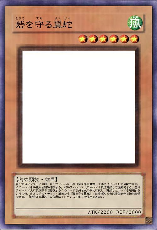 「上級モンスターは場に出たり戻ったりできるようにしました。この翼蛇は翼竜と入れ替わります。(蛇と竜は似てるので。)また、体内の毒で相手カードを葬ります。」(2013-07-07 10:57)
