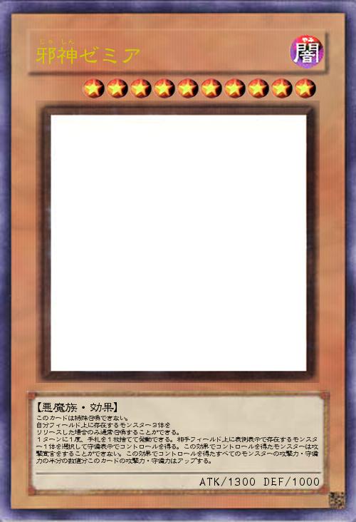 このカードは特殊召喚できない。 自分フィールド上に存在するモンスター3体を リリースした場合のみ通常召喚することができる。 1ターンに1度、手札を1枚捨てて発動できる。相手フィールド上に表側表示で存在するモンスター1体を選択して守備表示でコントロールを得る。この効果でコントロールを得たモンスターは攻撃宣言をすることができない。この効果でコントロールを得たすべてのモンスターの攻撃力・守備力の半分の数値分このカードの攻撃力・守備力はアップする。 |