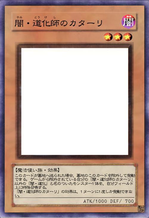 このカードが墓地へ送られた場合、墓地のこのカードを除外して発動できる。ゲームから除外されている自分の「闇・道化師のカターリ」以外の「闇・道化」と名のついたモンスター1体を、自分フィールド上に特殊召喚する。 「闇・道化師のカターリ」の効果は、1ターンに1度しか発動できない。 |