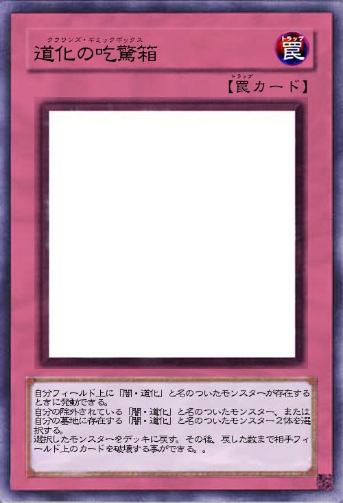 自分フィールド上に「闇・道化」と名のついたモンスターが存在するときに発動できる。 自分の除外されている「闇・道化」と名のついたモンスター、または自分の墓地に存在する「闇・道化」と名のついたモンスター2体を選択する。 選択したモンスターをデッキに戻す。その後、戻した数まで相手フィールド上のカードを破壊する事ができる。。 |