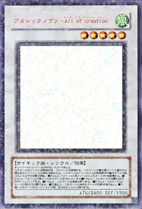 シンクロ素材に縛りのない上なかなかのステータスのアカシックシンクロ。ですが普通のデッキではまず用事の無いためどうでもいいと思います。