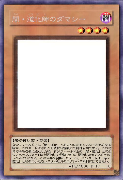 | 自分フィールド上に「闇・道化」と名のついたモンスターが存在する場合、このカードは手札から表側守備表示で特殊召喚できる。この効果で特殊召喚に成功した時、自分フィールド上の「闇・道化」と名のついたモンスター1体を選択して発動できる。選択したモンスターのレベルは4になる。この効果を発動したターン、このカードは「闇・道化」と名のついたモンスター以外のエクシーズ素材にはできない。 | |||