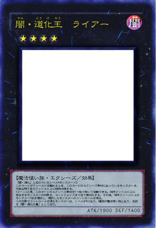 「闇・道化」と名のついたレベル4モンスター×2 このカードがフィールドを離れるとき、このカードのエクシーズ素材になっているモンスターを、可能な限り自分フィールド上に特殊召喚する。 1ターンに1度、このカードのエクシーズ素材を1つ取り除いて発動できる。相手フィールド上に存在するモンスターの効果を、エンドフェイズまで全て無効化する。その後、相手フィールド上のモンスター1体を選択し、選択したモンスターのコントロールを得る。 この効果でコントロールを得たモンスターは、レベルが4になり、種族が魔法使い族となり、名前を「闇・道化の虜」として扱う。 |