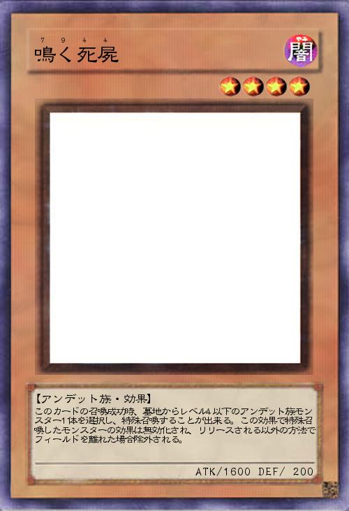 | このカードの召喚成功時、墓地からレベル4以下のアンデット族モンスター1体を選択し、特殊召喚することが出来る。この効果で特殊召喚したモンスターの効果は無効化され、リリースされる以外の方法でフィールドを離れた場合除外される。 | |||