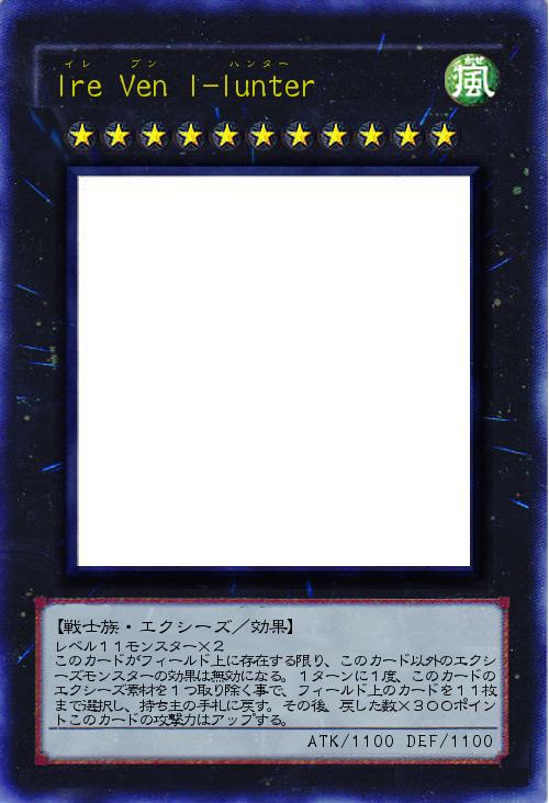 レベル11モンスター×2 このカードがフィールド上に存在する限り、このカード以外のエクシーズモンスターの効果は無効になる。1ターンに1度、このカードのエクシーズ素材を1つ取り除く事で、フィールド上のカードを11枚まで選択し、持ち主の手札に戻す。その後、戻した数×300ポイントこのカードの攻撃力はアップする。 |