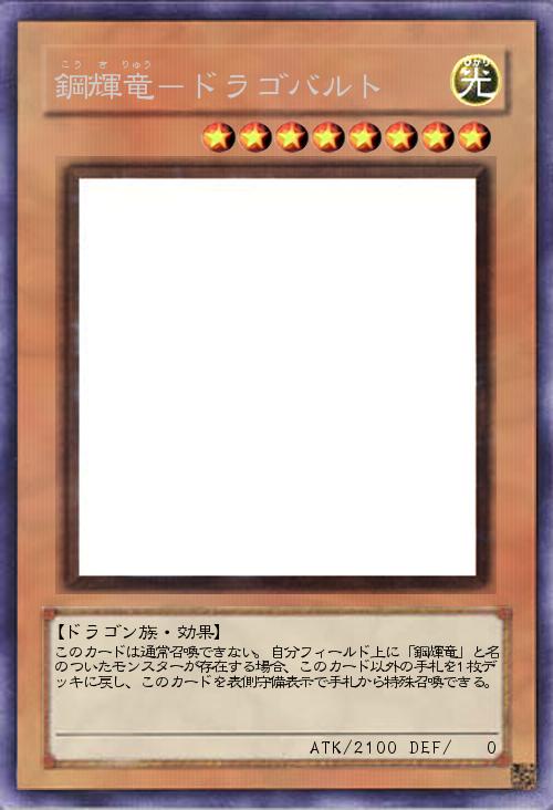 | このカードは通常召喚できない。自分フィールド上に「鋼輝竜」と名のついたモンスターが存在する場合、このカード以外の手札を1枚デッキに戻し、このカードを表側守備表示で手札から特殊召喚できる。 | |||