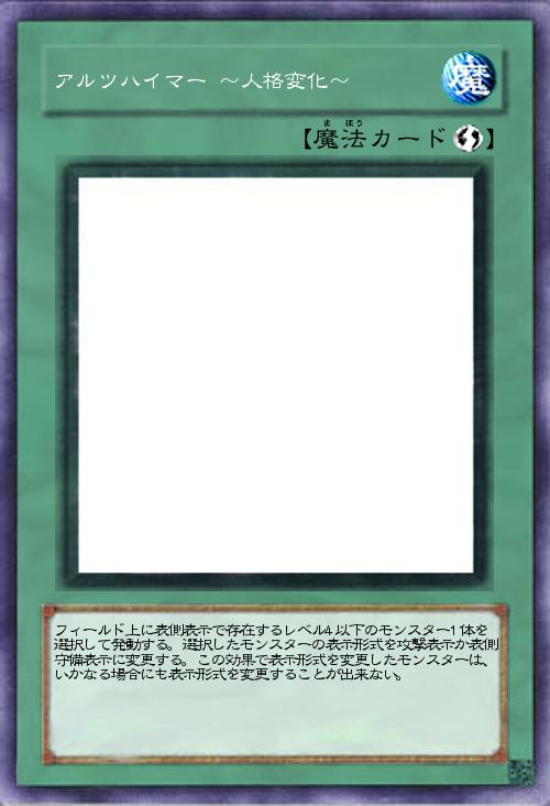 | フィールド上に表側表示で存在するレベル4以下のモンスター1体を選択して発動する。選択したモンスターの表示形式を攻撃表示か表側守備表示に変更する。この効果で表示形式を変更したモンスターは、いかなる場合にも表示形式を変更することが出来ない。 | |||