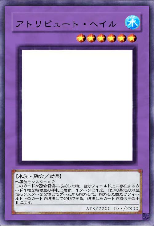 効果を見てみると・・・ステータスは少々貧弱ながらも、水属性モンスターを除外して手札にバウンスできる効果は安定の一言。自分が死んだ後も、他のアトリビュート・ヘイルのコストになれますし・・・あれ、コレチェーン・マテリアルで良くn(殴」(2013-07-29 21:51)