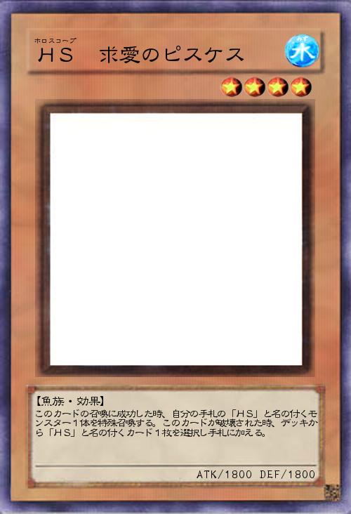 | このカードの召喚に成功した時、自分の手札の「HS」と名の付くモンスター1体を特殊召喚する。このカードが破壊された時、デッキから「HS」と名の付くカード1枚を選択し手札に加える。 | |||