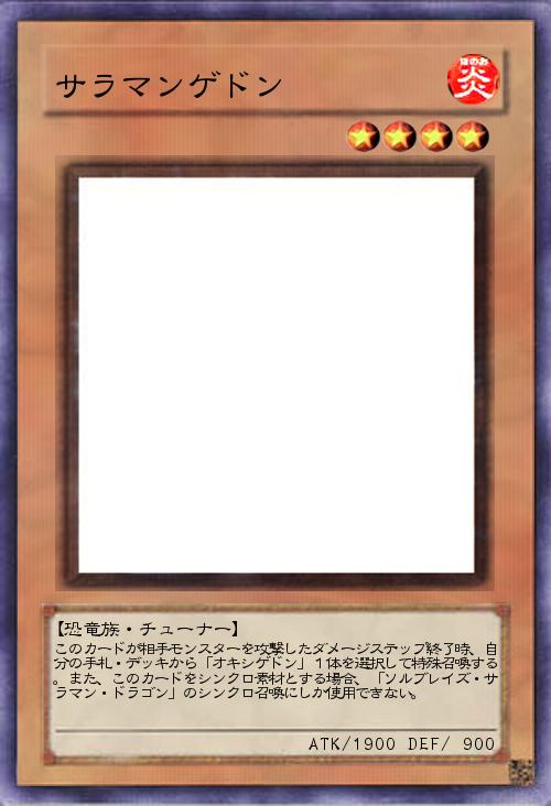 | このカードが相手モンスターを攻撃したダメージステップ終了時、自分の手札・デッキから「オキシゲドン」1体を選択して特殊召喚する。また、このカードをシンクロ素材とする場合、「ソルブレイズ・サラマン・ドラゴン」のシンクロ召喚にしか使用できない。 | |||