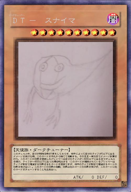 「-」達は基本的に自分のライフが0以下になるまで仕事が無いので、体力が+の間は大人しく「無限の手札」、「強欲な欠片」などで手札を増やし、この「DT-スナイマ」を手札に加えることから始めます。(ここで失敗するとライフがそのまま0になり負けますw)