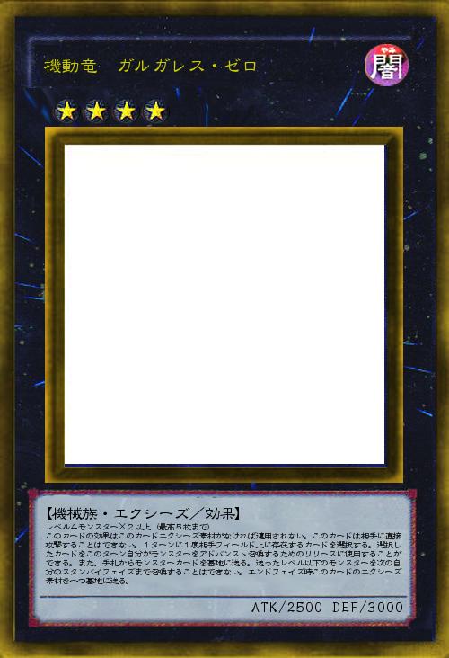 レベル4モンスター×2以上(最高5枚まで) このカードの効果はこのカードエクシーズ素材がなければ適用されない。このカードは相手に直接攻撃することはできない。1ターンに1度相手フィールド上に存在するカードを選択する。選択したカードをこのターン自分がモンスターをアドバンスト召喚するためのリリースに使用することができる。また、手札からモンスターカードを墓地に送る。送ったレベル以下のモンスターを次の自分のスタンバイフェイズまで召喚することはできない。エンドフェイズ時このカードのエクシーズ素材を一つ墓地に送る。 |