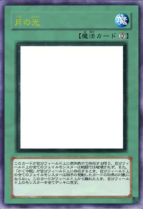| このカードが自分フィールド上に表側表示で存在する限り、自分フィールド上の全てのフェイルモンスターは戦闘では破壊されず、また、「かぐや姫」が自分フィールド上に存在するとき、自分フィールド上の全てのフェイルモンスターは相手の発動したカードの効果の対象にならない。このカードがフィールド上から離れたとき、自分フィールド上のモンスターを全てデッキに戻す。 | |||