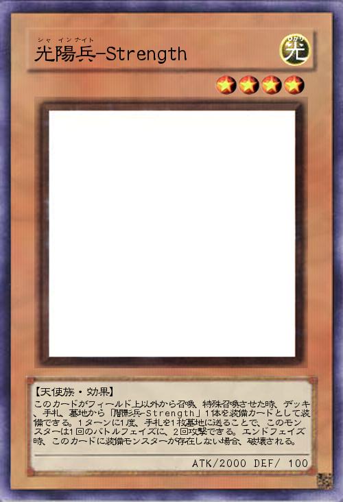 | このカードがフィールド上以外から召喚、特殊召喚させた時、デッキ、手札、墓地から「闇影兵-Strength」1体を装備カードとして装備できる。1ターンに1度、手札を1枚墓地に送ることで、このモンスターは1回のバトルフェイズに、2回攻撃できる。エンドフェイズ時、このカードに装備モンスターが存在しない場合、破壊される。 | |||