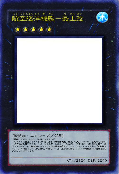 「機艦」と名のついたレベル5モンスター×2 このカードは自分フィールド上に存在する「重巡洋機艦-最上」の上にこのカードを重ねてエクシーズ召喚する事もできる。1ターンに1度、このカードのエクシーズ素材を1つ取り除く事で、自分フィールド上に「艦載機トークン」1体を特殊召喚する。また、自分フィールド上の「艦載機トークン」1体をリリースする事で、相手フィールド上の全てのモンスターの攻撃力・守備力は500ポイントダウンする。 |