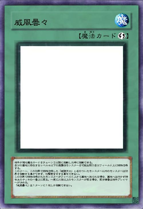 風属性で真炎の爆発的なカードがなかったので、「威堕天士」シリーズの魔法カードとして一つ。能動的に使えるカードだと強すぎるので一応相手に依存する形で作りました。