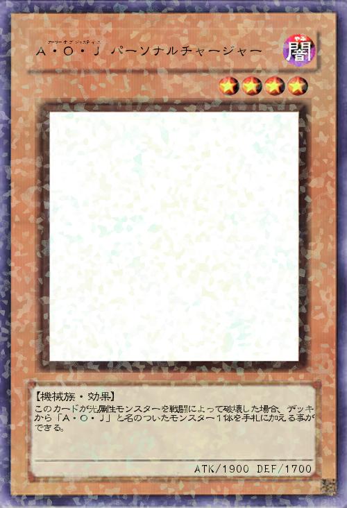 | このカードが光属性モンスターを戦闘によって破壊した場合、デッキから「A・O・J」と名のついたモンスター1体を手札に加える事ができる。 | |||