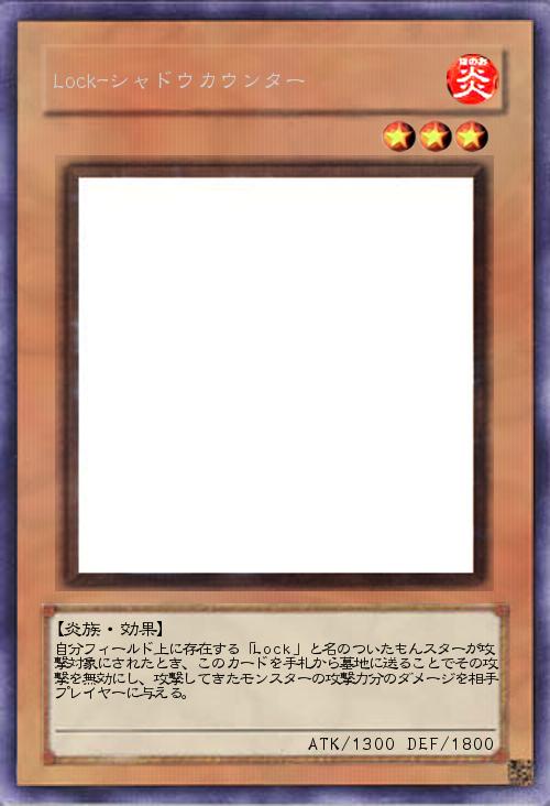 | 自分フィールド上に存在する「Lock」と名のついたもんスターが攻撃対象にされたとき、このカードを手札から墓地に送ることでその攻撃を無効にし、攻撃してきたモンスターの攻撃力分のダメージを相手プレイヤーに与える。 | |||