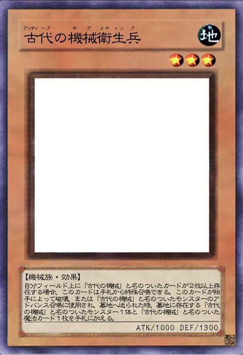 | 自分フィールド上に「古代の機械」と名のついたカードが2枚以上存在する場合、このカードは手札から特殊召喚できる。このカードが相手によって破壊、または「古代の機械」と名のついたモンスターのアドバンス召喚に使用され、墓地へ送られた時、墓地に存在する「古代の機械」と名のついたモンスター1体と「古代の機械」と名のついた魔法カード1枚を手札に加える。 | |||
