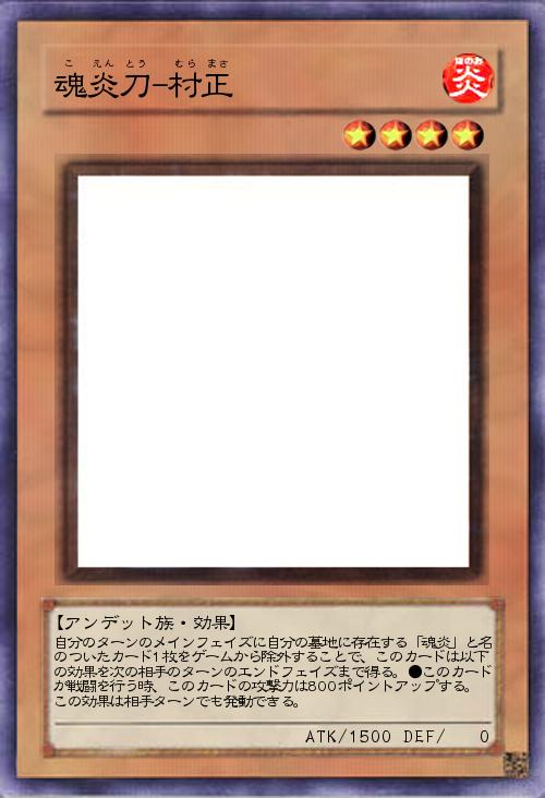 | 自分のターンのメインフェイズに自分の墓地に存在する「魂炎」と名のついたカード1枚をゲームから除外することで、このカードは以下の効果を次の相手のターンのエンドフェイズまで得る。●このカードが戦闘を行う時、このカードの攻撃力は800ポイントアップする。この効果は相手ターンでも発動できる。 | |||