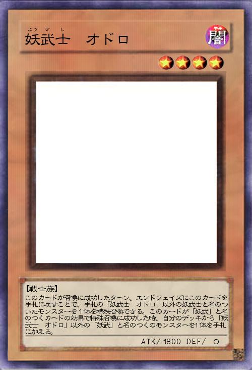 | このカードが召喚に成功したターン、エンドフェイズにこのカードを手札に戻すことで、手札の「妖武士 オドロ」以外の妖武士と名のついたモンスターを1体を特殊召喚できる。このカードが「妖武」と名のつくカードの効果で特殊召喚に成功した時、自分のデッキから「妖武士 オドロ」以外の「妖武」と名のつくのモンスターを1体を手札に加える。 | |||