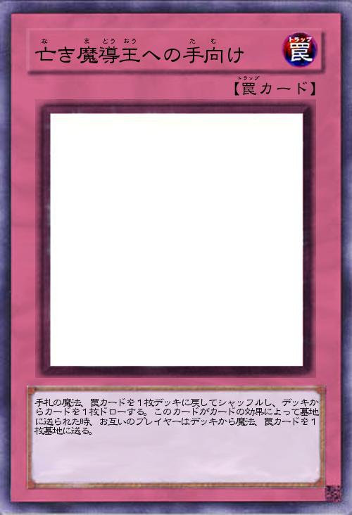 | 手札の魔法、罠カードを1枚デッキに戻してシャッフルし、デッキからカードを1枚ドローする。このカードがカードの効果によって墓地に送られた時、お互いのプレイヤーはデッキから魔法、罠カードを1枚墓地に送る。 | |||